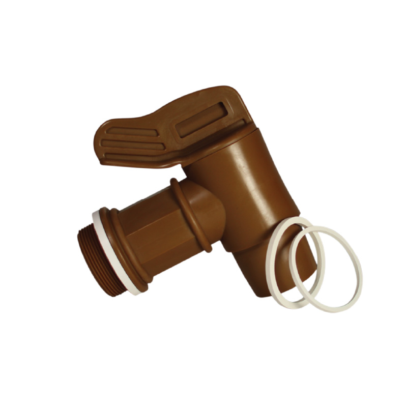 3/4″ and 2″ spout (valve) made out of polypropylene. Chemical and corrosive proof. Suitable for use in dispensing all types of strippers, lacquers, thinners, additives, etc.